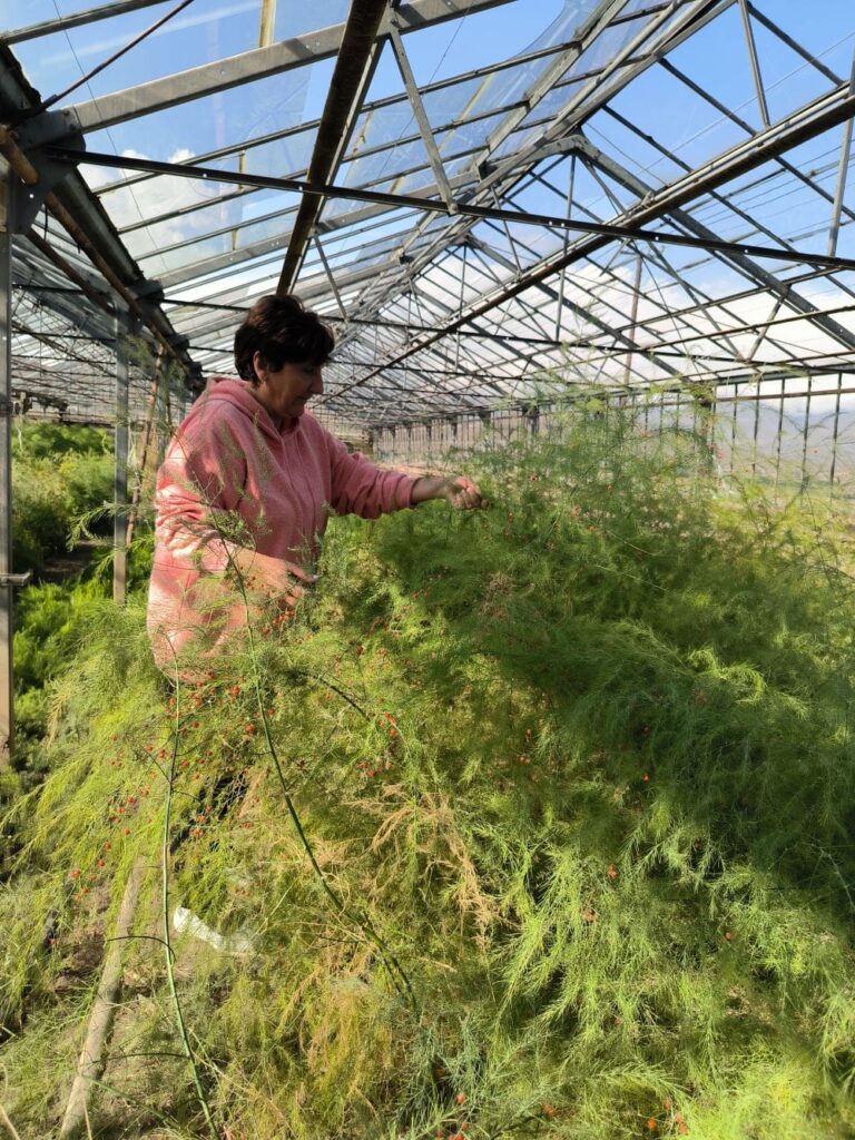 Ծնեբեկի մշակության գործում ներգրավված են հիմնականում կանայք։ Ծանր ֆիզիկական աշխատանքի դեպքում օգնում են տղամարդիկ, բայց սեզոնին 9 կին է աշխատում ջերմոցներում: